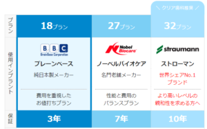 | 代表的なプラン | 本数×32万円(プラスチック・銀歯)、37万円(ハイブリッド)、43万円(セラミック) |