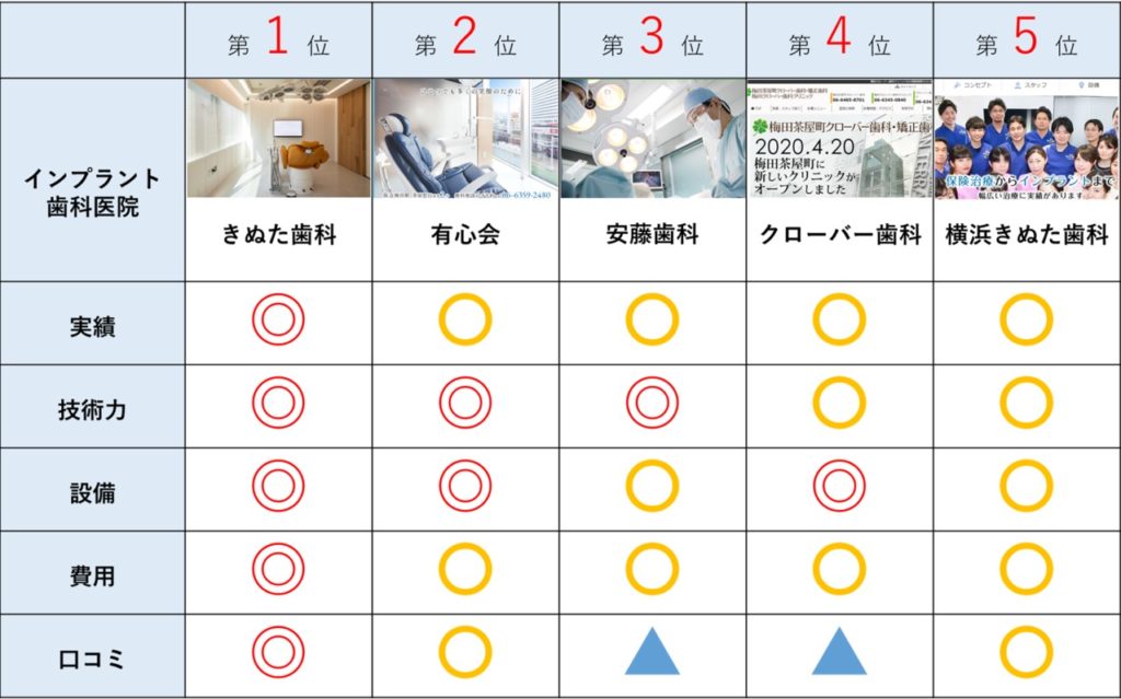 インプラントの歯科医院を選ぶポイントをもとに、インプラントの歯科医院比較表を作ってみました!